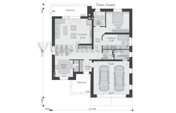 | Размеры дома: | 15.24м×13.74м |