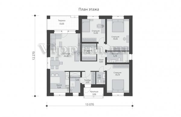 | Размеры дома: | 13.07м×12.27м |