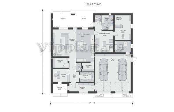 | Размеры дома: | 17.73м×17.44м |